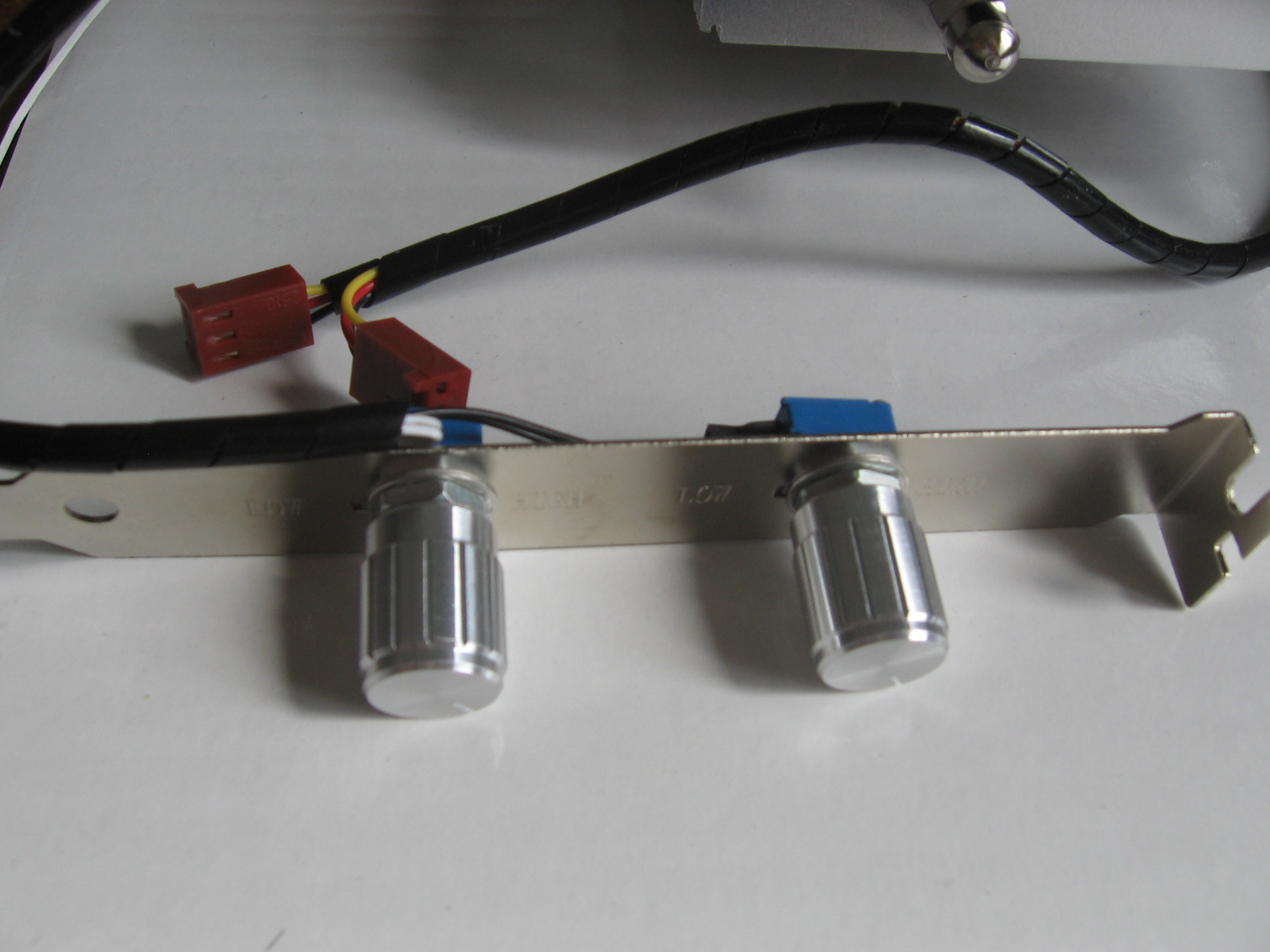 Il controller delle ventole è collegato ad una staffa PCI, può accadere che le manopole sono troppo grandi per passare attraverso l'apertura di slot PCI. Se è così, basta tirare fuori la staffa, e reinstallare una volta la staffa è a posto. Come si può vedere dall'ultima immagine, i fili portano direttamente alla ventole. Pertanto, anche se non si utilizza il controller di ventola, è necessario lasciarlo nel vostro case. Le ventole sono alimentate da connettori a 3-pin, ma è fornito un connettore a due Molex 3-pin.