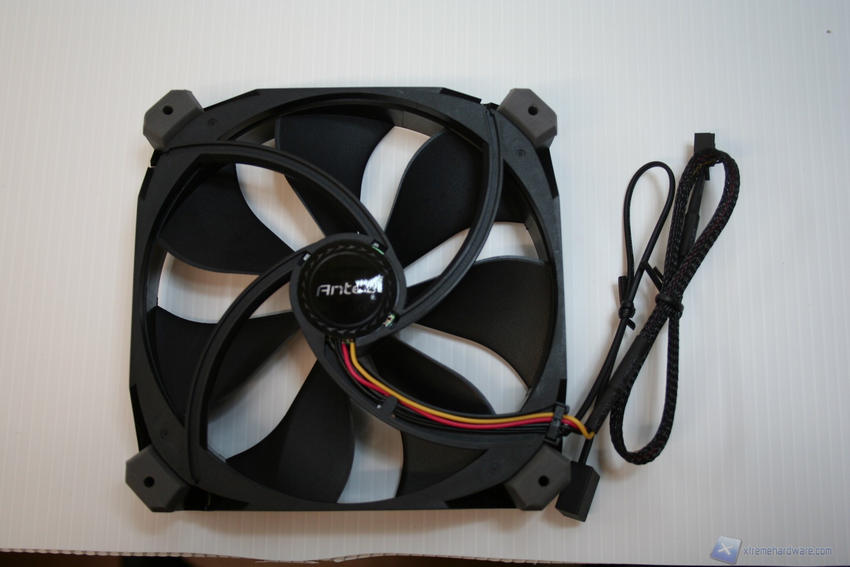 Precisiamo che era presente un forte ticking assiale, quindi forse il sample in questione sarebbe stato necessario sostituirlo, sample che comunque non ci è stato mai fornito da Antec e che invece abbiamo incluso di nostra iniziativa nella comparativa. E’ possibile che sia un modello difettato, anche se questo problema non dovrebbe incidere significativamente sulle performance. Questo implica che al massimo del regime di rotazione la rumorosità possa essere leggermente più elevata di quella che invece è presente in ventole perfettamente funzionanti. In questo caso troviamo un motore con un diametro simile alle soluzioni SilenX.