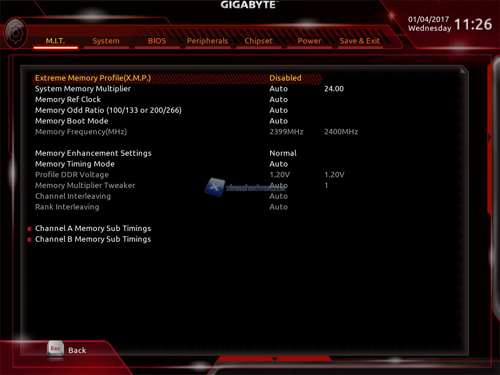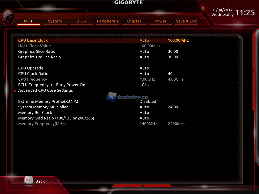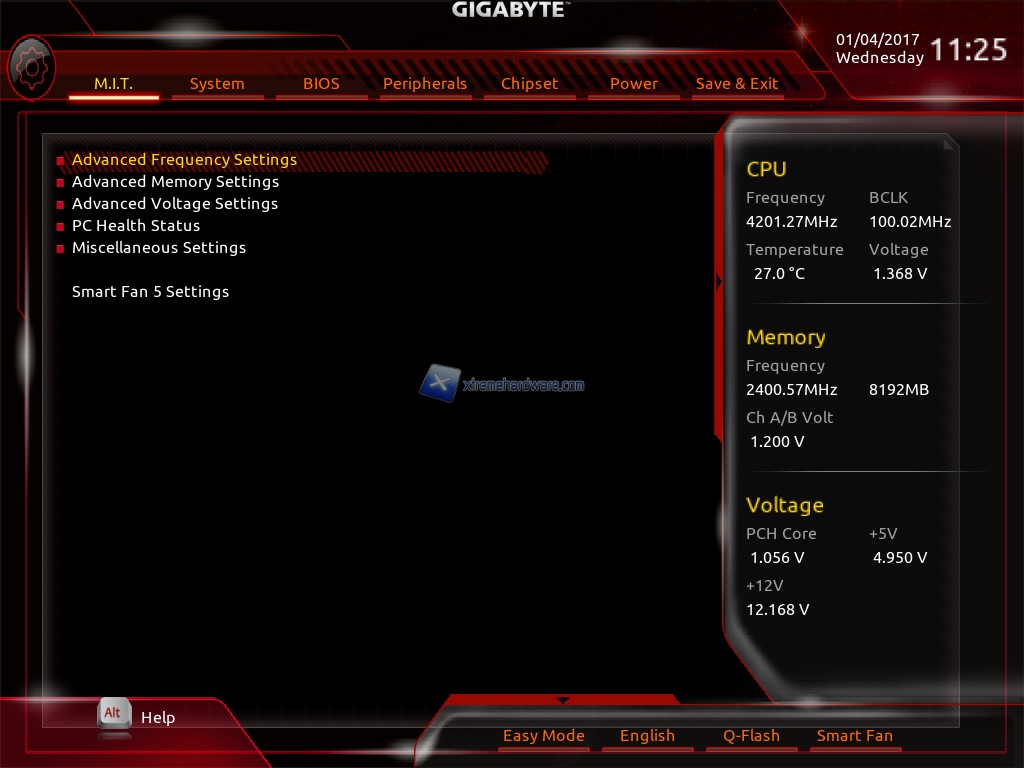 Una volta entrati nel BIOS della GIGABYTE AORUS Z270X-Gaming 5 ci troveremo di fronte sempre un BIOS di tipo UEFI, grafica in colorazione Nero/Rosso scuro e layout al solito veloce e intuitivo. Interfaccia già vista con il modello Z170-Gaming K3 (QUI).
