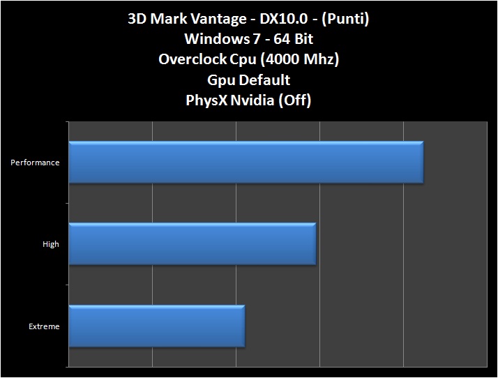 Il test vengono fatti in modalità, Performance, High e Extreme e in DirectX 10.